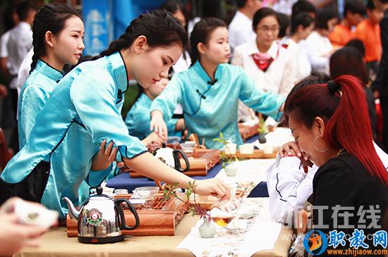 这是科尔沁区职业中等专业学校今年举行的职业教育活动周内容之一。今年五月的第二周,是国务院指定的职业教育活动周。在去年4月,国务院决定将每年5月的第二周设立为职业教育活动周,这体现出党和政府对职业教育发展的重视。从5月9日开始至5月16日,科尔沁区职业中等专业学校陆续开展了学生文艺汇报演出、毕业生就业推介会、师生书画展、趣味运动会、学生篮球比赛、学生社会实践活动、学生经典诵读大赛及主题班会、学生征文及硬笑书法大赛、老师中华传统诗文诵读大赛、司法专业警体展示、航空服务专业礼仪展示、专业技能之星评选等活动。活动周内容丰富多彩,既展示了学校师生的全方位实力,又为学生就业打开门路,实实在在接地气。
