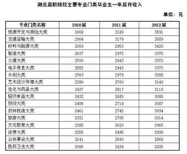 2013年,湖北省中职学校毕业生平均起薪每月约2000元,高职院校毕业生平均起薪每月约2500元,部分专业或能力出众的职业院校毕业生月薪可达5000—6000元。全国职业技能大赛获奖者大多成为企业高管或技术骨干,有的年薪20万元以上。越来越多的职业院校毕业生通过诚实劳动创造美好生活,加入到中等收入群体。