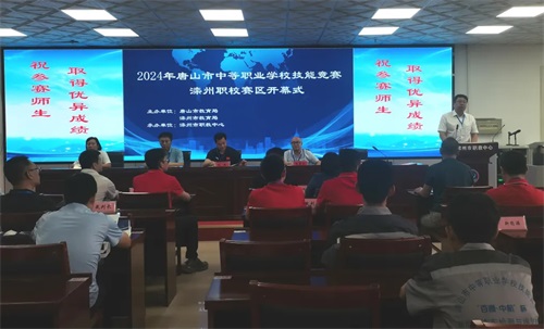 唐山市教育局党组成员、副局长赵乾讲话并宣布开赛。他指出:全市中等职业学校技能大赛,是深化唐山职业教育产教融合、引领教育教学改革的有力抓手,是提升唐山职业院校人才培养质量、检验教育教学成果的重要舞台,是营造职业教育改革发展社会环境、服务技能型社会建设的有效举措。他希望大家共同努力,将这一赛事打造成唐山职业教育的金字招牌和特色标识,为建设教育强市再塑新动能;希望参赛代表队和选手沉着参赛、奋力拼搏,展示良好形象,发挥最佳水平,争取优异成绩。